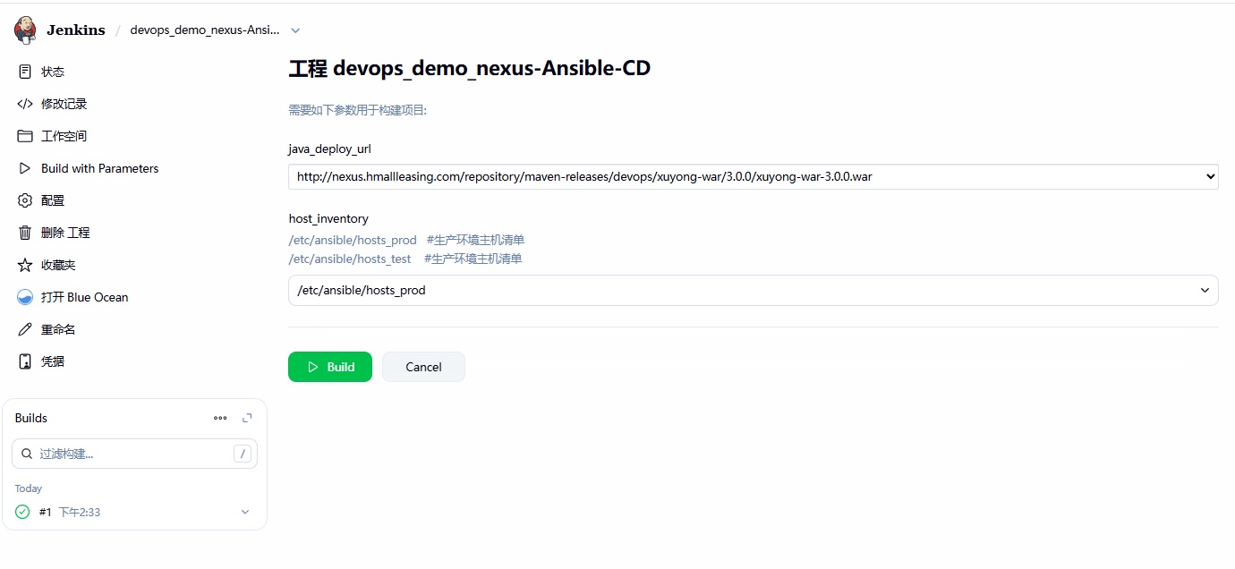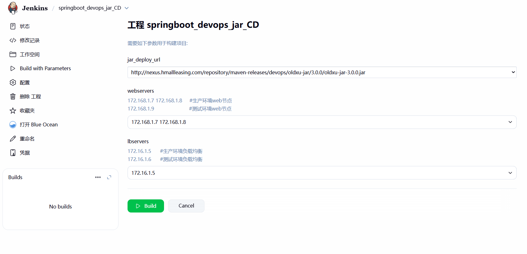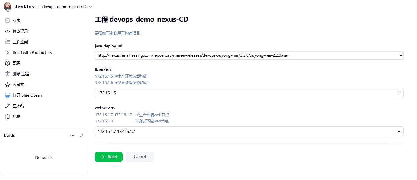 2.Jenkins 前端构建效果(Shell 脚本需要额外传递 lbservers 和 webservers 变量)