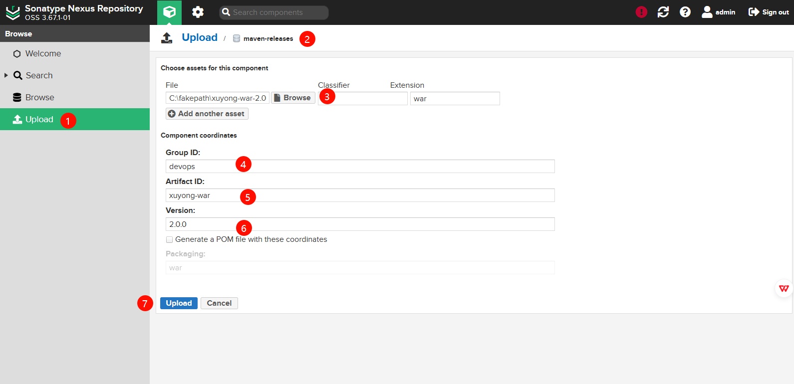 [root@jenkins ~]# mvn deploy:deploy-file \ | |