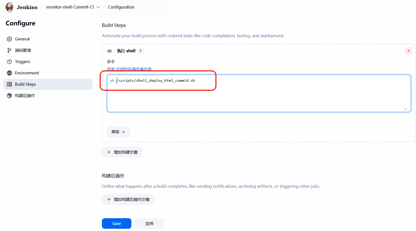 3、为对应的项⽬,增加 Shell 脚本,然后执⾏如上脚本