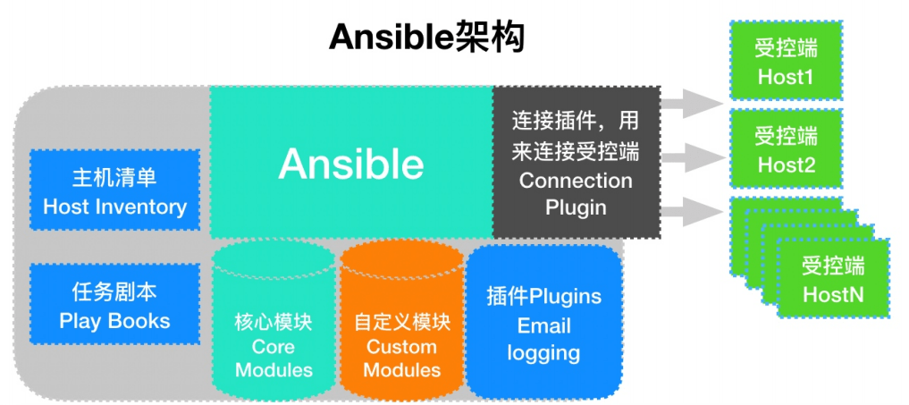- 操作灵活: Ansible 有较多的模块,提供了丰富的功能、playbook 则提供类似于编程语言的复杂功能;
